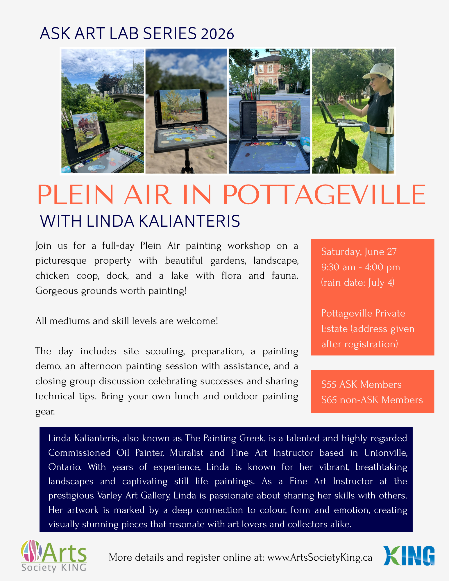 Featuring instructor/artist Linda Kalianteris, an experienced award winning plein air artist. (https://thepaintinggreek.ca/)